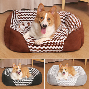 方形宠物窝毛绒棋盘格四季通用狗窝垫子猫咪窝耐磨宠物床批发