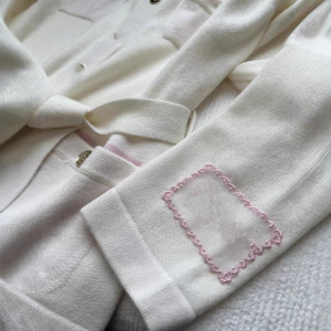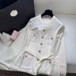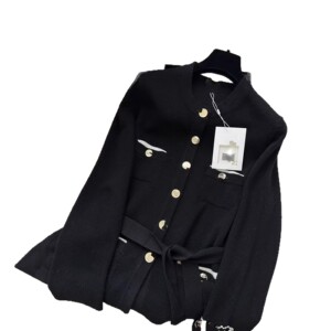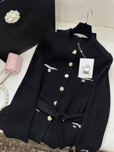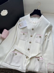南油直供25秋冬款时髦袖口字母徽标刺绣撞色腰带圆领针织开衫外套