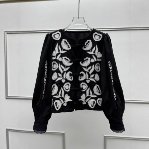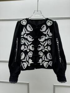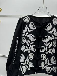 深圳南油法式复古中式盘扣灯芯绒刺绣灯笼袖长袖外套薄款上衣女