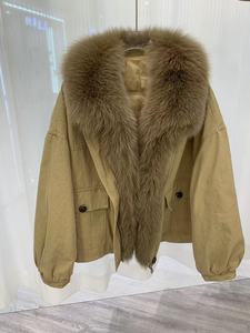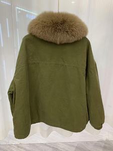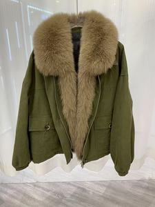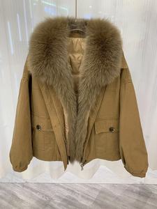 秋冬新款狐狸毛翻领可脱卸毛领鹅绒羽绒外套女派克服时髦