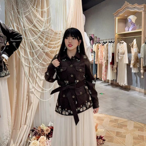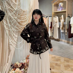 现货2025秋季新款吴千语同款工装风琥珀流光中长款外套MC86JA577