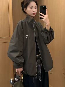 欧货立领外套女2025秋装新款时尚百搭休闲宽松大版棒球服夹克上衣