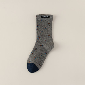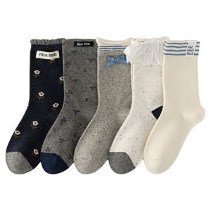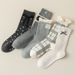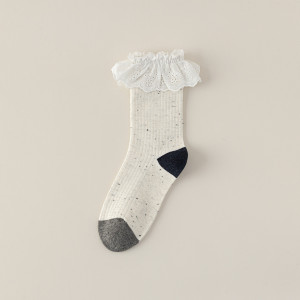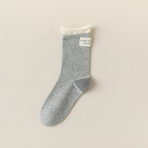 法式花边饰品中筒袜女春秋韩版点纱棉袜灰蓝色百搭时尚轻奢堆堆袜