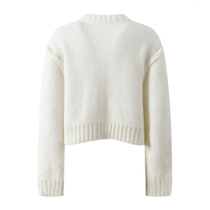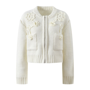 2025秋季新款慵懒风立体钩花装饰时尚圆领短款毛衣针织开衫外套
