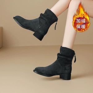 棕色勃肯靴子女秋冬软皮堆堆靴磨砂靴子2025新款爆款时装靴瘦瘦靴