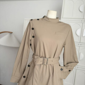 熹凤梨辣妹2025秋季新款显瘦英伦风卡其侧门襟风衣收腰外套上衣女