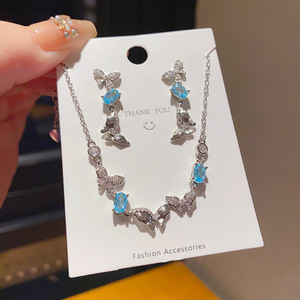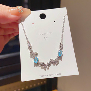法式轻奢锆石几何椭圆形蝴蝶锁骨链时尚精致小众高级感气质项链女