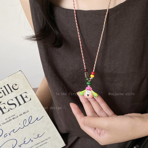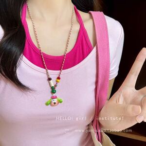 可爱童趣小动物吊坠项链女长款编织小众高级感百搭毛衣链配饰批发