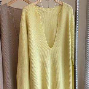 秋冬季300斤极简风气质感深U大U领毛衣女宽松慵懒风针织衫ins