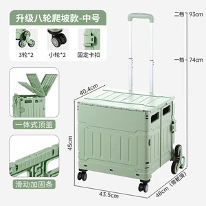 【升级直拉款绿色】八轮爬坡中号50L+一体式盖★