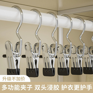 不锈钢浸胶小夹子大嘴三字夹鱼尾夹衣帽裤子袜子夹衣柜袋口夹晾晒
