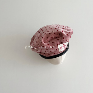 韩版ins儿童同款个性波点贝雷帽凹造型复古穿搭男女童画家时装帽