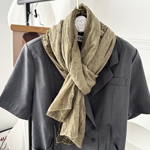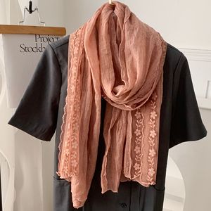 棉麻围巾韩系氛围感蕾丝刺绣围巾丝巾时尚百搭文艺围脖小披肩批发
