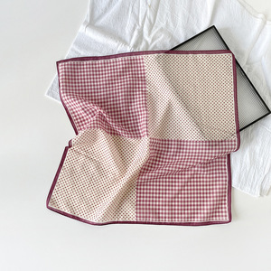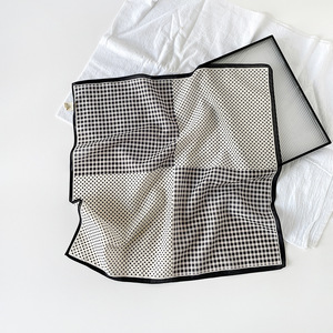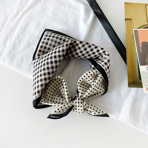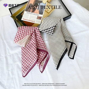 法式波点小方巾丝巾女士三角包头发带棉真丝护颈围脖子衬衫薄围巾