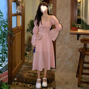 显瘦初恋温柔仙女公主连衣裙裙子气质长裙纯欲洛丽塔泡泡袖连衣裙