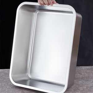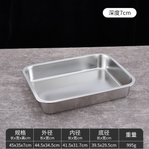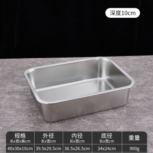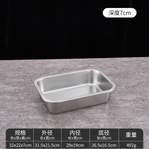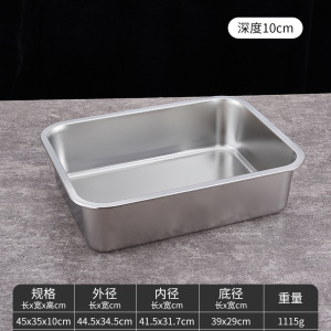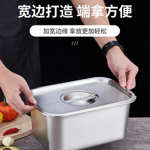 304不锈钢方盆加深托盘长方形方盘自助餐份数盆快餐菜盆带盖方盒