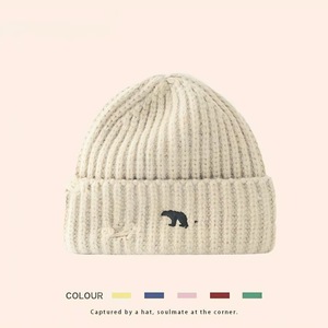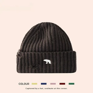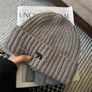 北极熊破洞针织帽秋冬加厚保暖护耳套头帽男女同款大头围防风帽子