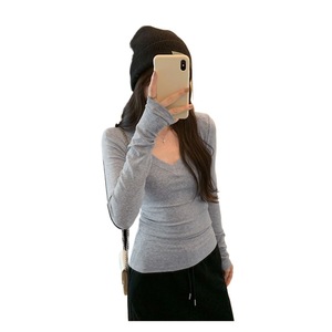 韩版甜辣V领修身显瘦内搭T恤衫女2025早秋新款女装设计感上衣ins