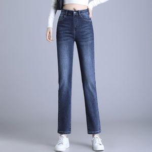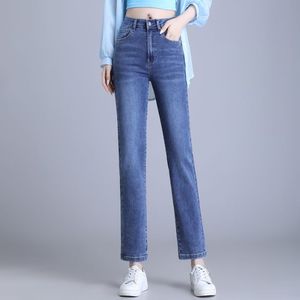 秋季新款女式高腰直筒牛仔裤百搭显瘦九分烟管裤宽松弹力大码长裤
