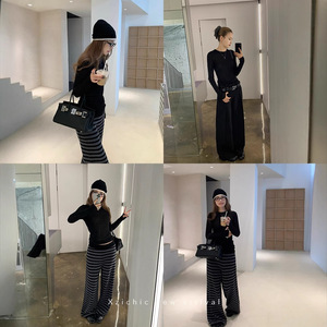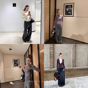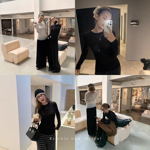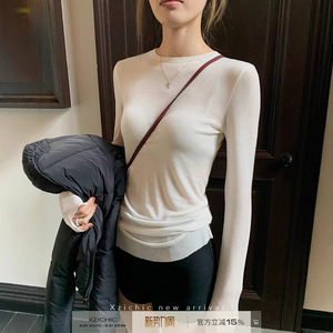 Xzichic天丝羊毛圆领打底衫女长袖T恤女2024秋季上衣亲肤基础款