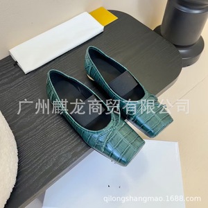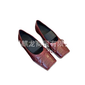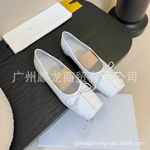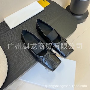 高端2025新款真皮方头复古蝴蝶结松紧弹力一字带平底芭蕾舞鞋单鞋