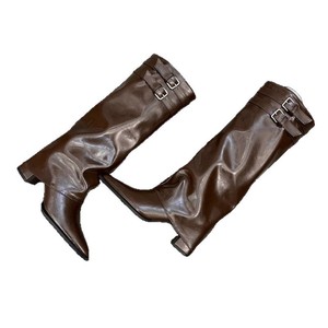 高级感~巨显瘦!裤管长靴女白色尖头v口粗跟显瘦不过膝高筒骑士靴