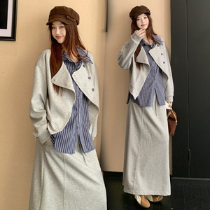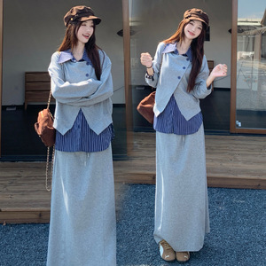 ~2025早秋显瘦不色假两件气质遮胯大码两件套套装
