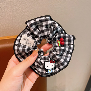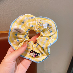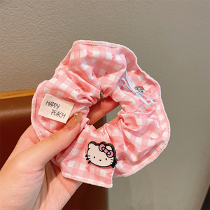韩系儿童秋冬格纹布艺印花头绳亲子款卡通人物发圈肠圈马尾大肠圈