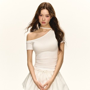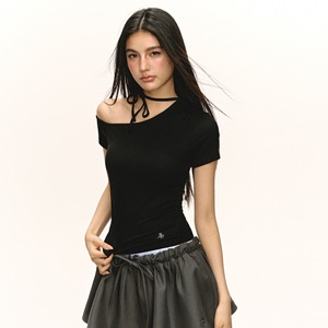 Ariseism 美式复古红色斜肩修身短袖t恤女夏季新款辣妹打底上衣