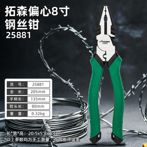 25881,拓森偏心电工专用8寸老虎钳,12-72,0.32kg