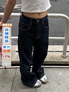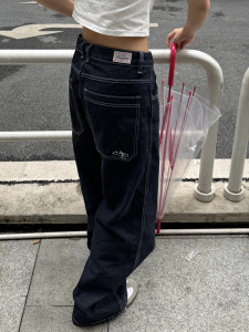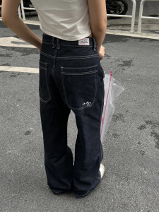 川川也美式复古刺绣宽松百搭直筒牛仔裤男女街头阔腿潮牌裤子显瘦