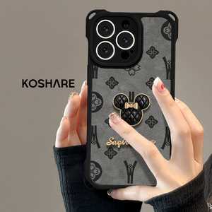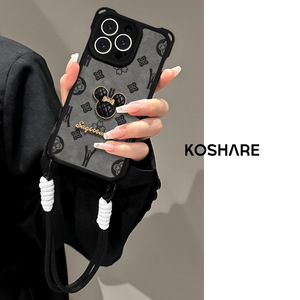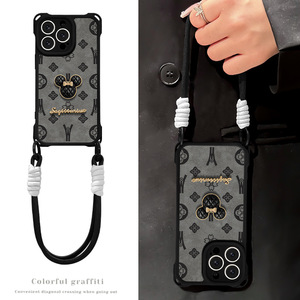 米奇公仔适用苹果16pro手机壳iphone14四角挂绳15硅胶羊皮13防摔