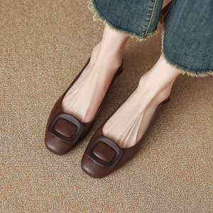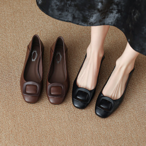 百搭单鞋女2025年早春新款低跟四季鞋粗跟网红鞋子方头扣件工作鞋