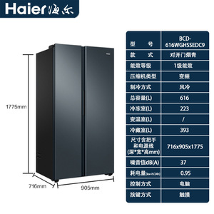 海尔【616升 对开门】BCD-616WGHSSEDC9