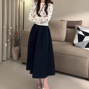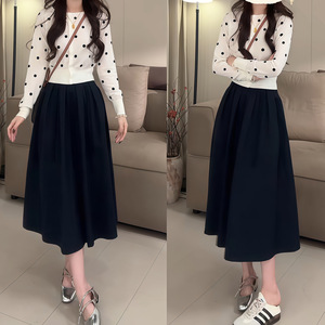 【+现货】2025现货早秋新款气质提花长袖针织开衫上衣+半身裙