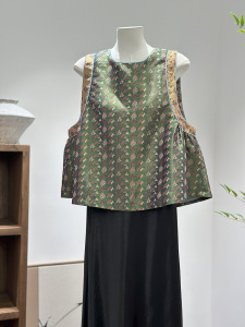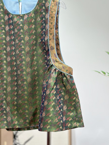 高级小众设计年轻新中式背心女秋外穿马甲国风减龄绿色圆领娃娃衫