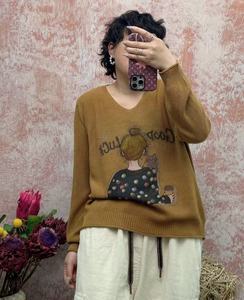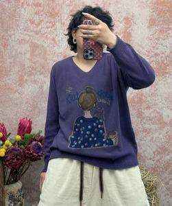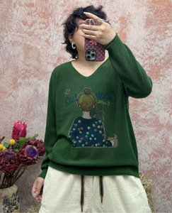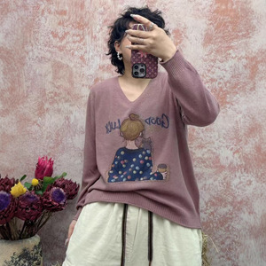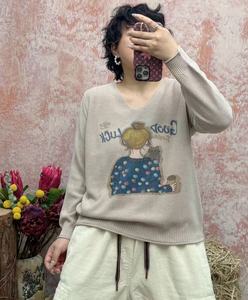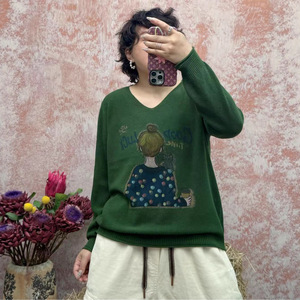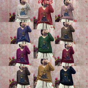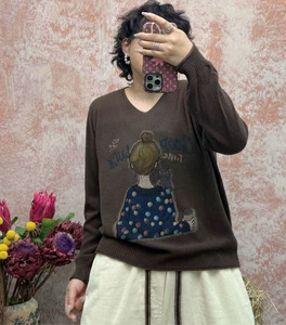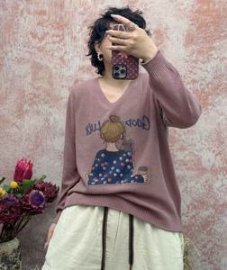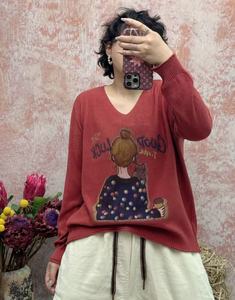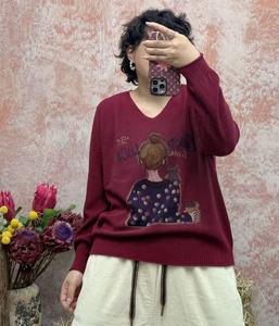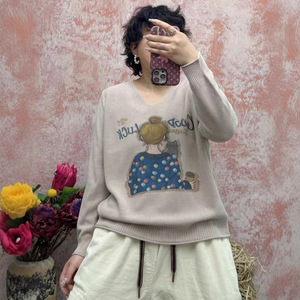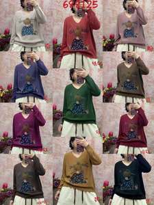 印花毛衣 2025秋季新款 V领套头针织衫女百搭宽松休闲上衣688125
