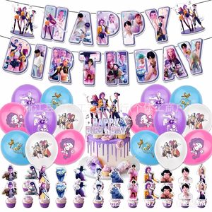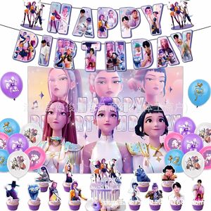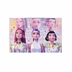 现货速发猎魔女团嘻哈音乐生日派对装饰拉旗蛋糕插背景布气球套装