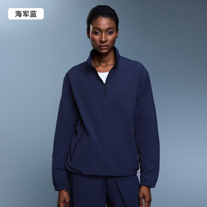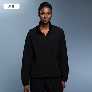 轻户外防风立领运动外套女轻量防水半拉链宽松长袖健身上衣D25173