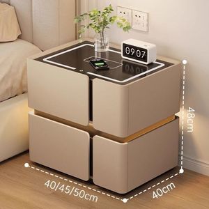 智能实木床头柜轻奢高级家用卧室带音响无线充电收纳床边柜免安装