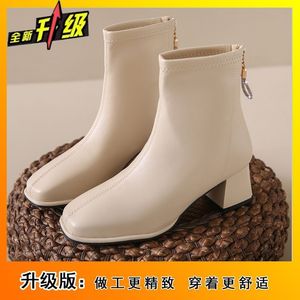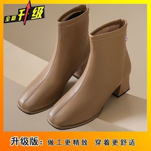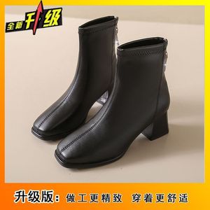 法式洋气短靴子女外穿时尚舒适复古显瘦方头女靴子2025秋冬季新款