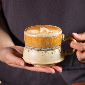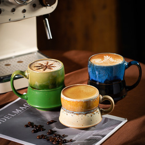 新款复古陶瓷咖啡杯子窑变高颜值轻奢马克杯拿铁拉花杯高级感水杯