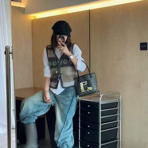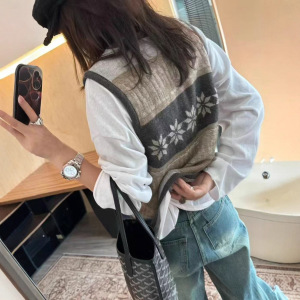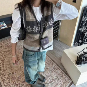 v领针织开衫马甲背心女2025秋新款宽松外穿马夹复古撞色毛衣坎肩