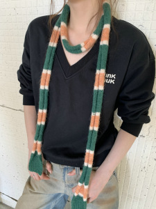 小众设计飘带韩版ins条纹细窄小围巾女潮秋冬y2k辣妹装饰腊肠围脖