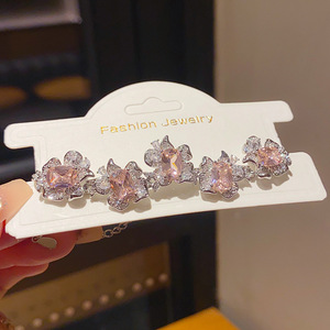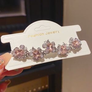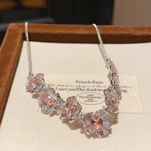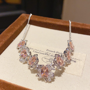法式轻奢锆石几何方形花朵毛衣链小众高级感精致气质甜美时尚项链
