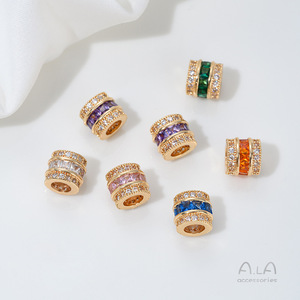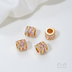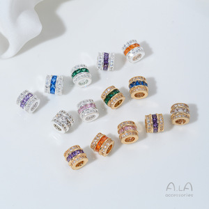 14K包金镀厚银镶锆大孔隔珠配件手工串珠diy水晶手链珍珠饰品材料