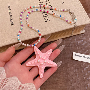 度假风海星串珠长款项链女2025新款夏天海边夸张锁骨链多巴胺配饰