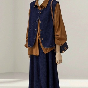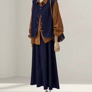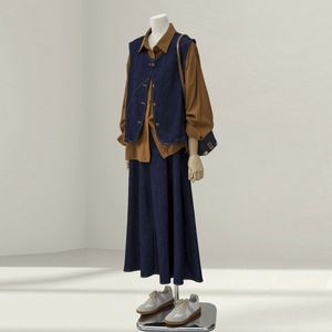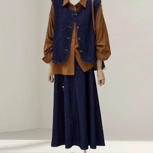 韩系超好看两件套装裙女2025秋新款牛仔马甲半身裙穿搭一整套纽扣