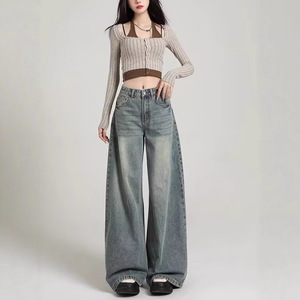 复古韩版阔腿牛仔裤女秋季新款适合梨形身材宽松bf慵懒风大码长裤