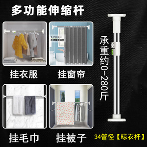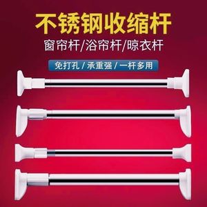 加厚卫生间晾衣杆窗帘杆伸缩杆衣柜挂衣杆收缩浴帘杆不锈钢阳台新